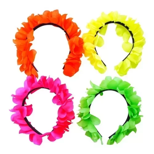 vincha de florcitas de tela fluo