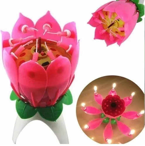 Encender mecha, a los pocos segundos se encenderán los 8 pétalos y la flor se abrirá, comenzando a sonar la música del feliz cumpleaños. Una vez sopladas las velas, cerrar los pétalos y volver la vela a posición inicial para que deje de sonar.