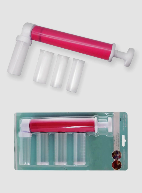 Aplicador Hobbycor Multiuso. Contiene 4 tubos y 1 aplicador. Material: plástico. Este modelo solo contiene lo mencionado en la descripción. Las fotos son ilustrativas. Aplicador de tinte ideal para trabajos de arte, manualidades, moda y pasatiempo creativo. Use estos productos para aplicar tintes a sus dulces, pasteles y otros. Instrucciones de uso: -Lavar con jabón neutro y agua corriente todas las partes y componentes antes del uso. -Antes de usar, lubrique con algunas gotas de aceite vegetal comestible en el agujero "ACEITE", en la tapa trasera del cilindro. -Añada el colorante líquido o en polvo (diluido) en el tubo y aplique. -El uso de Glitter puede bloquear el paso del aire (obstrucción). -Para evitar obstrucción lave con agua corriente después del uso.